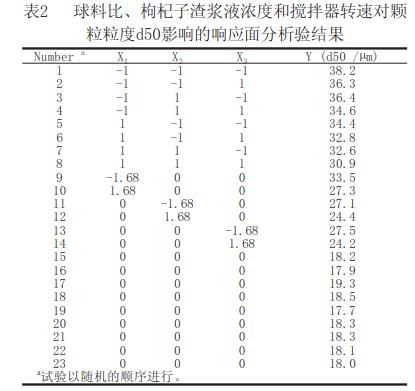 通過研究球料比、枸杞子渣漿液濃度、攪拌器轉(zhuǎn)速對枸杞子渣粒度的影響,得出如下結(jié)論: